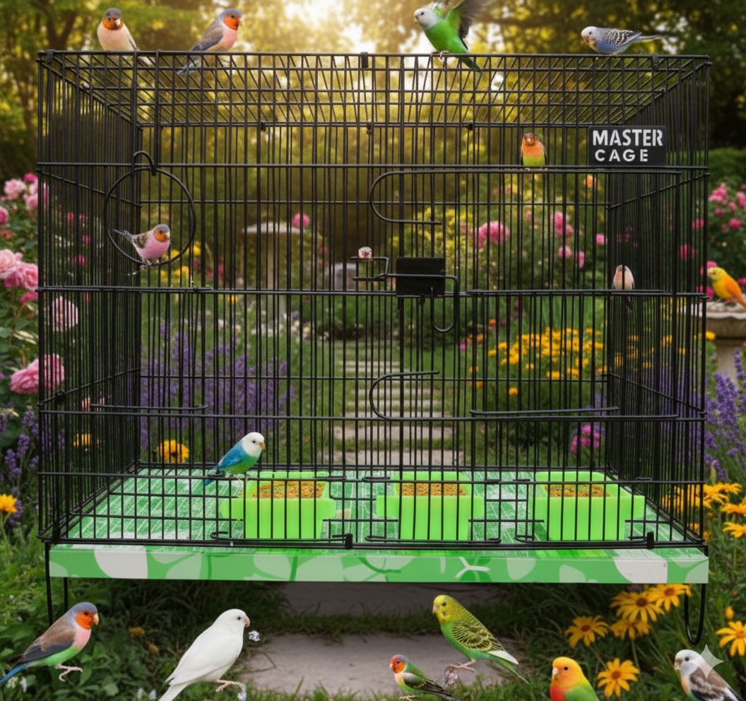High-quality single-portion breeding cage (24×18×18 inches) designed for durability, convenience, and professional bird breeding. Available in white and black with premium accessories and a fully Folding design.